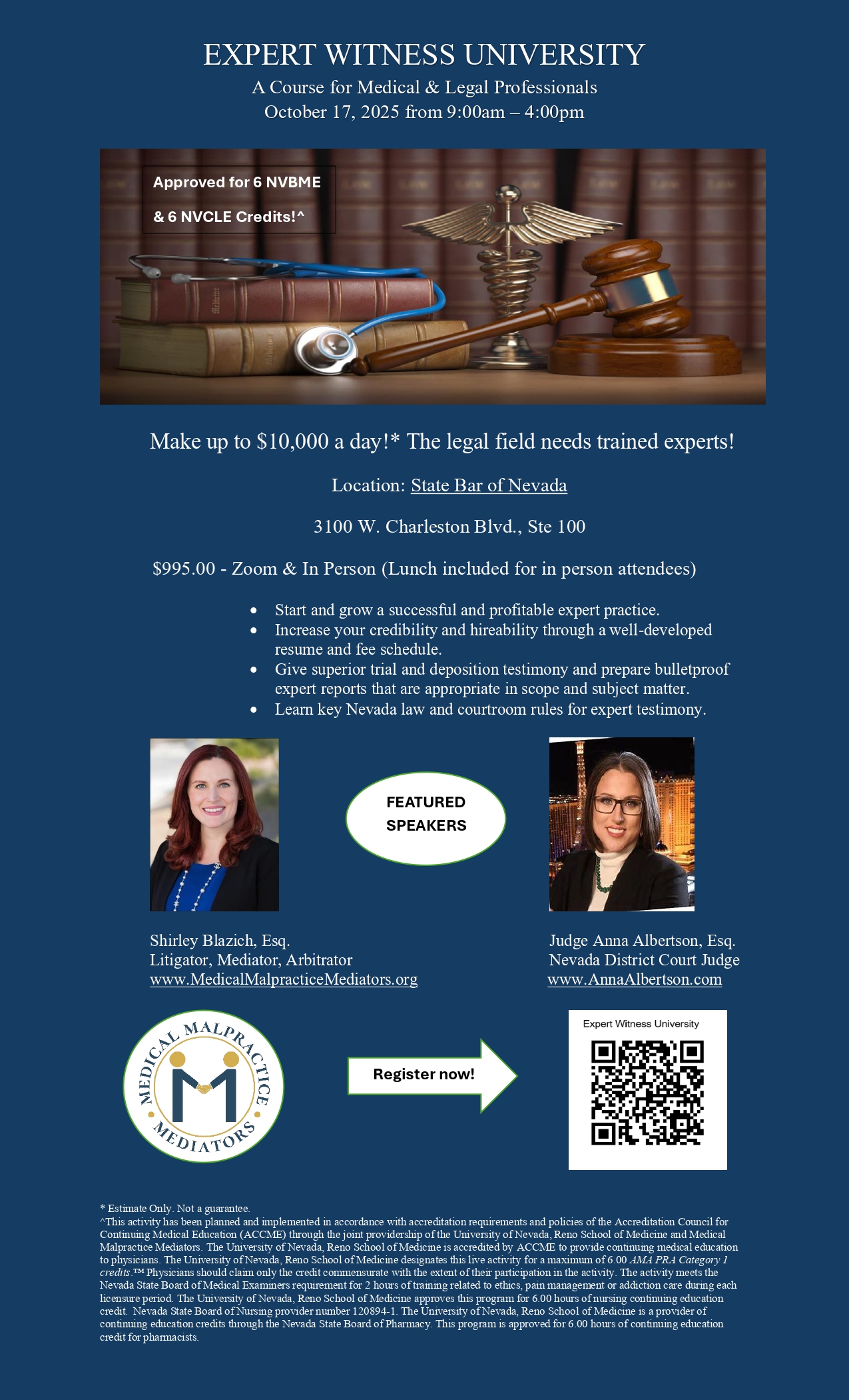 EventsNewsExpert Witness UniversityAugust 14, 2025by Medical Malpractice Mediators0Discover what Expert Witness University has to offer—check out the flyer! CLICK HERE Here is the payment link for Expert Witness University: